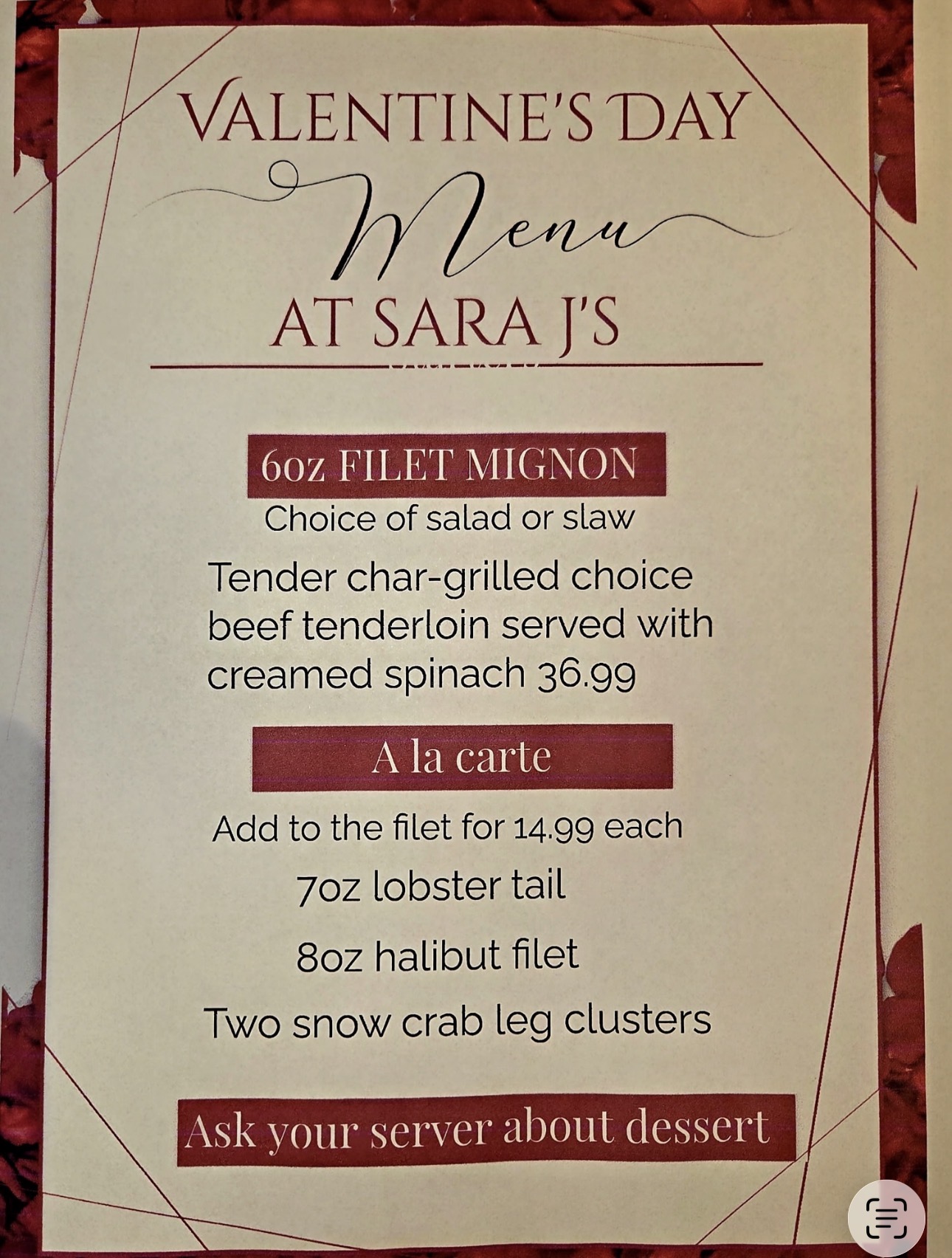 partiesWelcome to Sara J's, a cherished family-owned restaurant that has been delighting guests since 1992. Experience the beauty of waterside dining while savoring our exquisite selection of fresh seafood and mouthwatering steaks. Locals know us as a favorite destination, and visitors can't resist the chance to indulge in our authentic local dishes paired with the warmth of southern hospitality. At Sara J's, we are passionate about crafting new culinary creations to share with your loved ones. Join us for a meal, and prepare to feel not just welcomed, but truly like part of our family. Come and let us make your dining experience unforgettable!